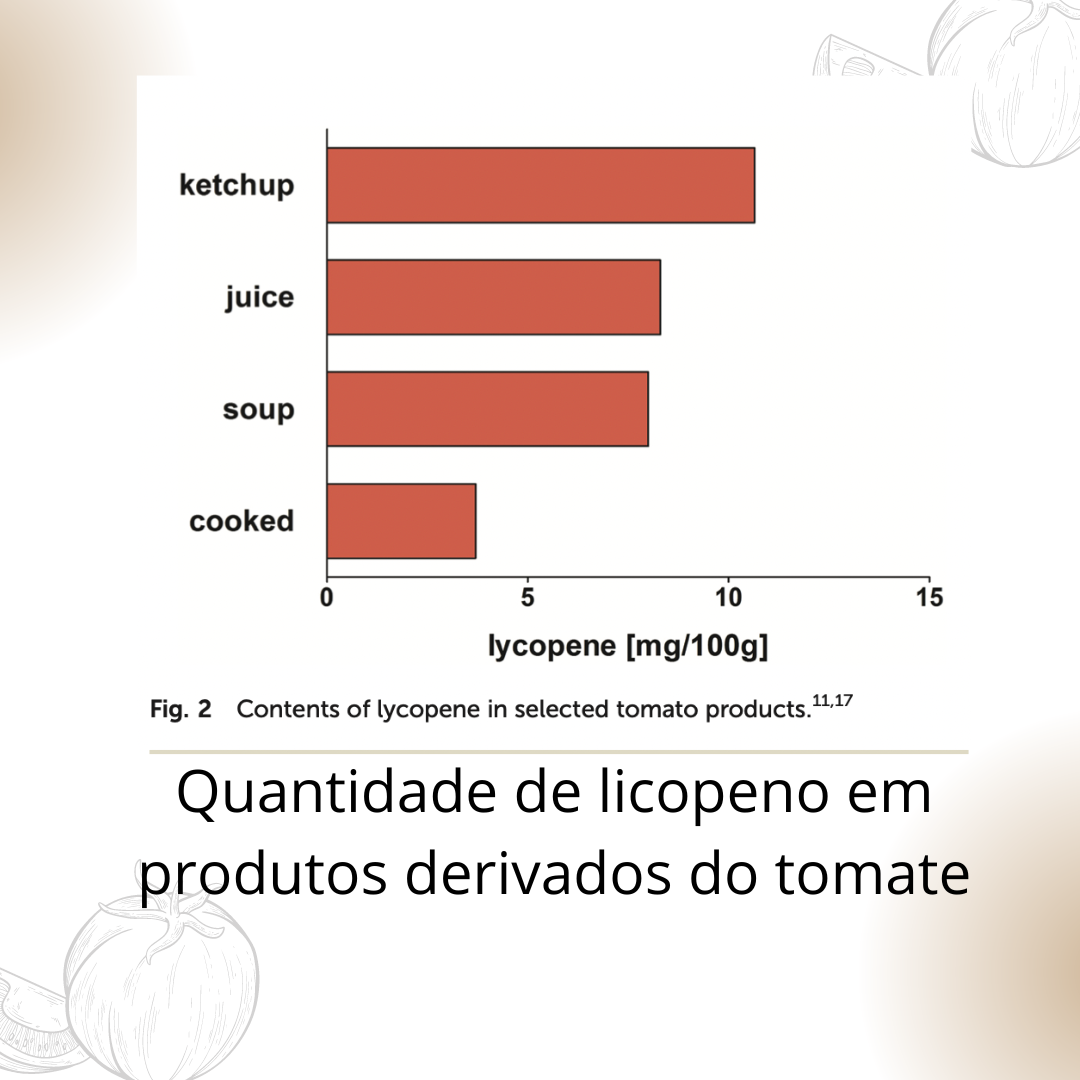 O tomate é uma das principais fontes podendo ser consumido in natura, molho, ketchup, suco ou em sopa.