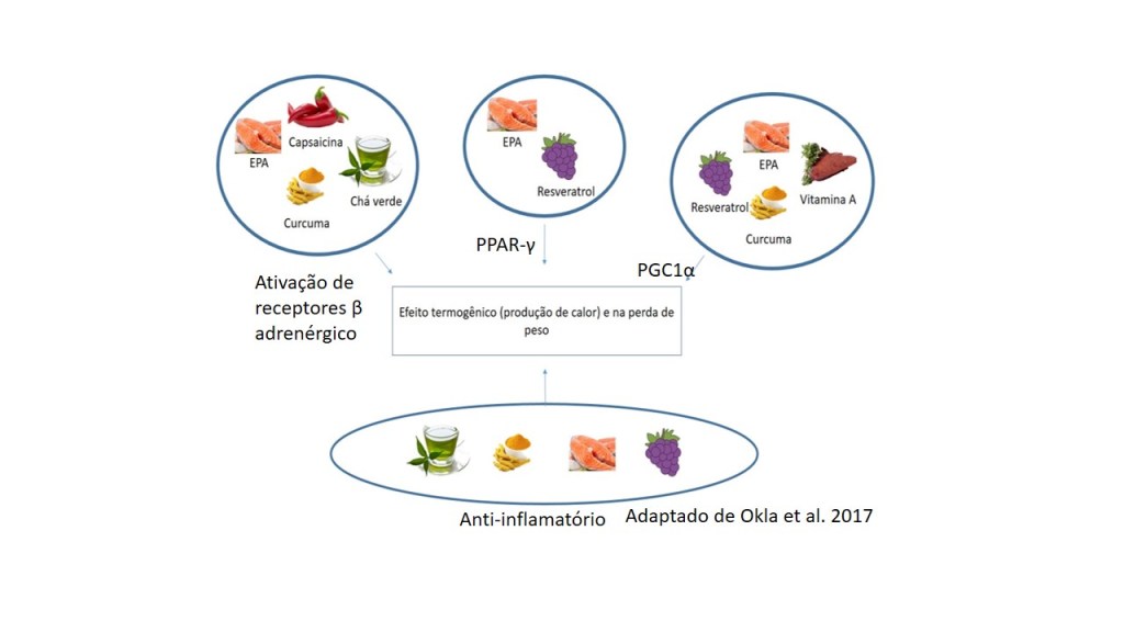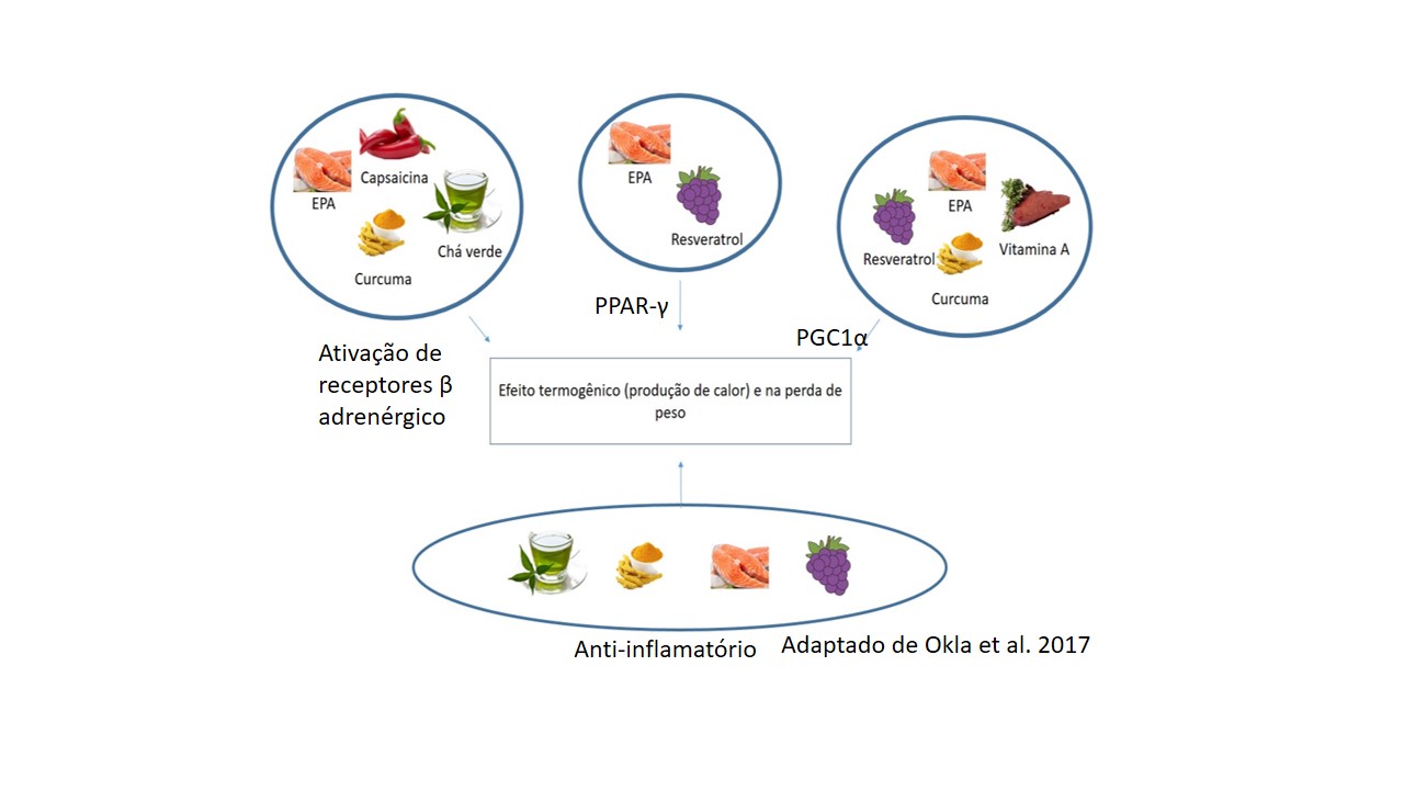 Alimentos fontes de resveratrol, vitamina A, capsaicina e EPA, por exemplo, apresentam características interessantes que pode auxiliar no processo de perda de peso, melhorando a funcionalidade do tecido adiposo. Em condições de melhor funcionalidade do tecido adiposo, esse se torna energeticamente mais ativo, podendo aumentar a produção de calor, além de armazenar e apresentar um catabolismo de lipídeos de forma mais eficiente e controlada. Além disso, estes alimentos são anti-inflamatórios que em condições de obesidade ou em doenças inflamatórias pode ser essencial para melhor tratamento e resposta bioquímica e imunológica.