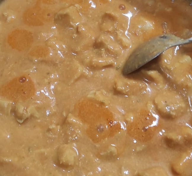 Em uma panela, adicione o azeite de oliva e refogue o frango por 10 minutos ou até secar o líquido.